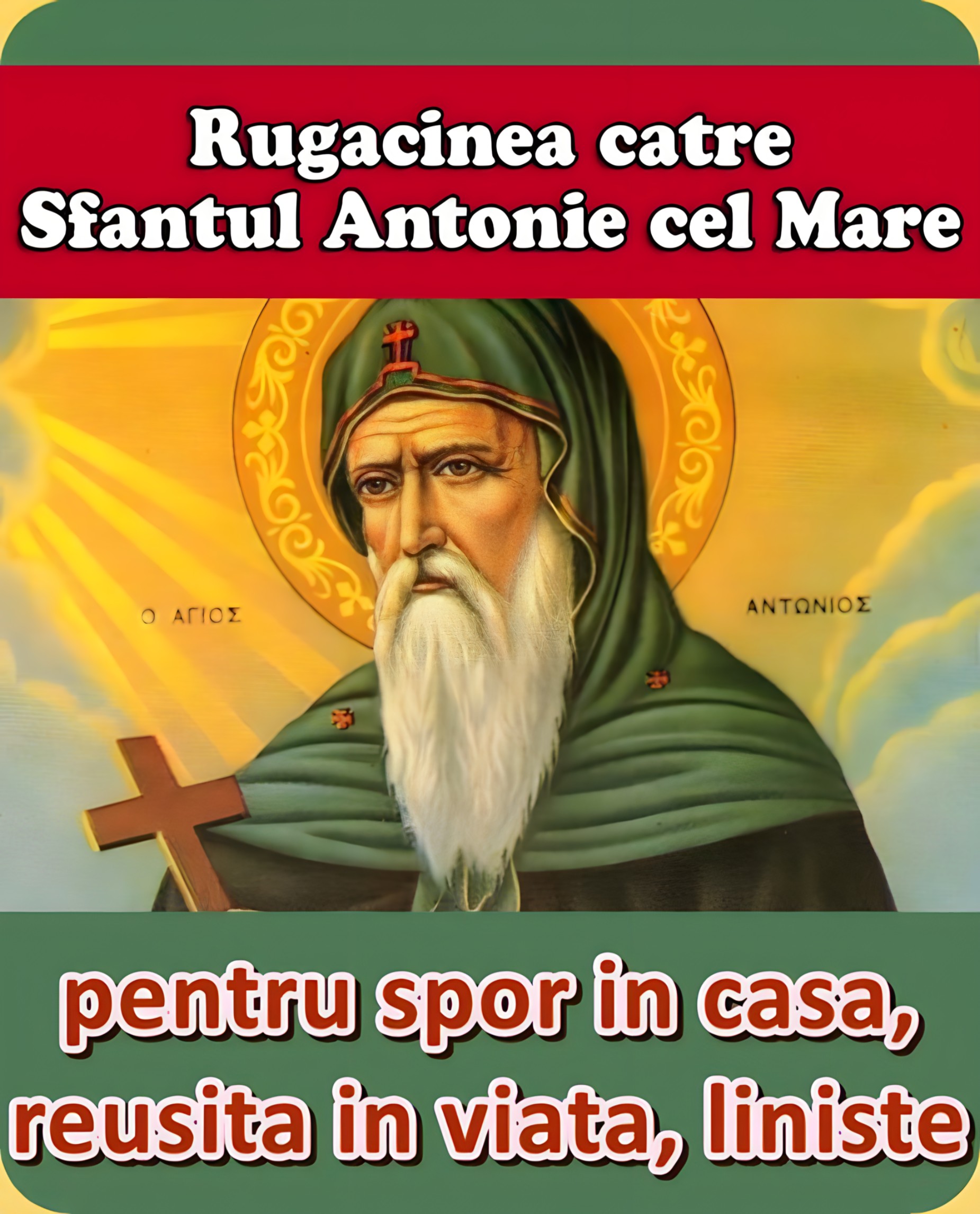 Bunule Părinte Antonie, cel ce durerile şi păcatele noastre le cunoşti, nu trece cu vederea glasurile de rugăciune ale celor ce aleargă la mijlocirea Ta şi nu te uita la nevrednicia celor ce Te roagă, ci la slava şi mila lui Dumnezeu, pe care Tu L-ai mărturisit şi spre care se îndreaptă rugăciunea ce Ţi-o aducem.